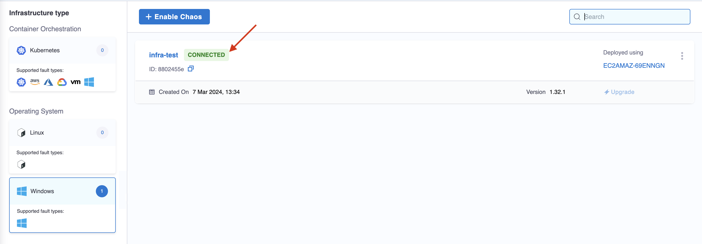 Select the ⋮icon against the chaos infrastructure name and select Disable.