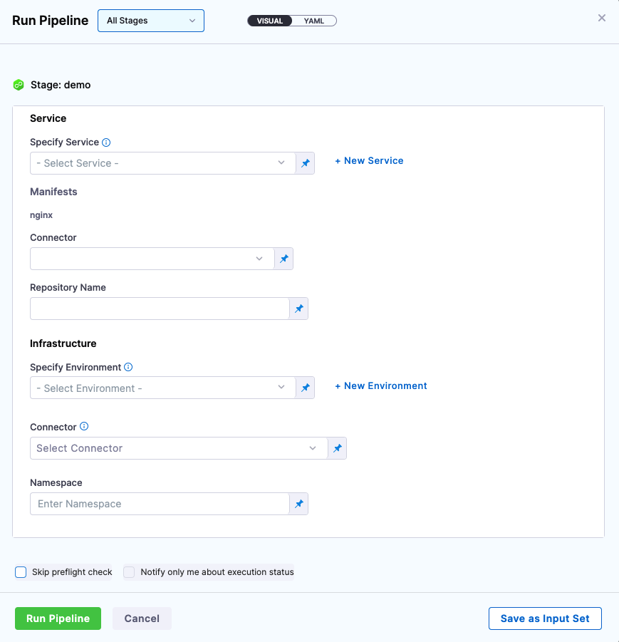 - Pipelines are triggered manually in the Harness Manager or automatically in response to Git events, schedules, new artifacts, and so on.