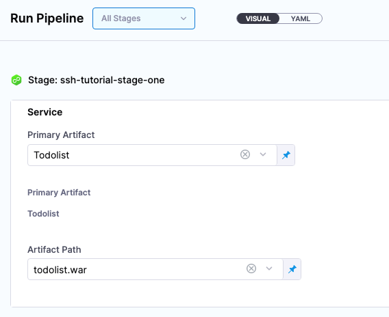 In Artifact Path, leave the default Runtime Input value <+input> for that field.