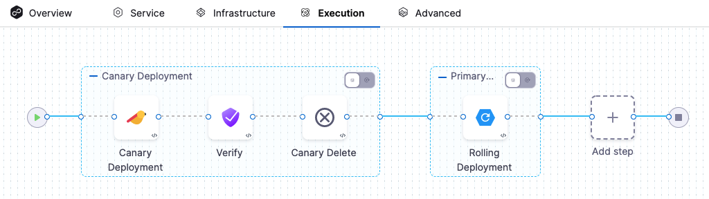 - The Verify step can be enabled in a CD stage the first time you open the Execution settings and select the deployment strategy.