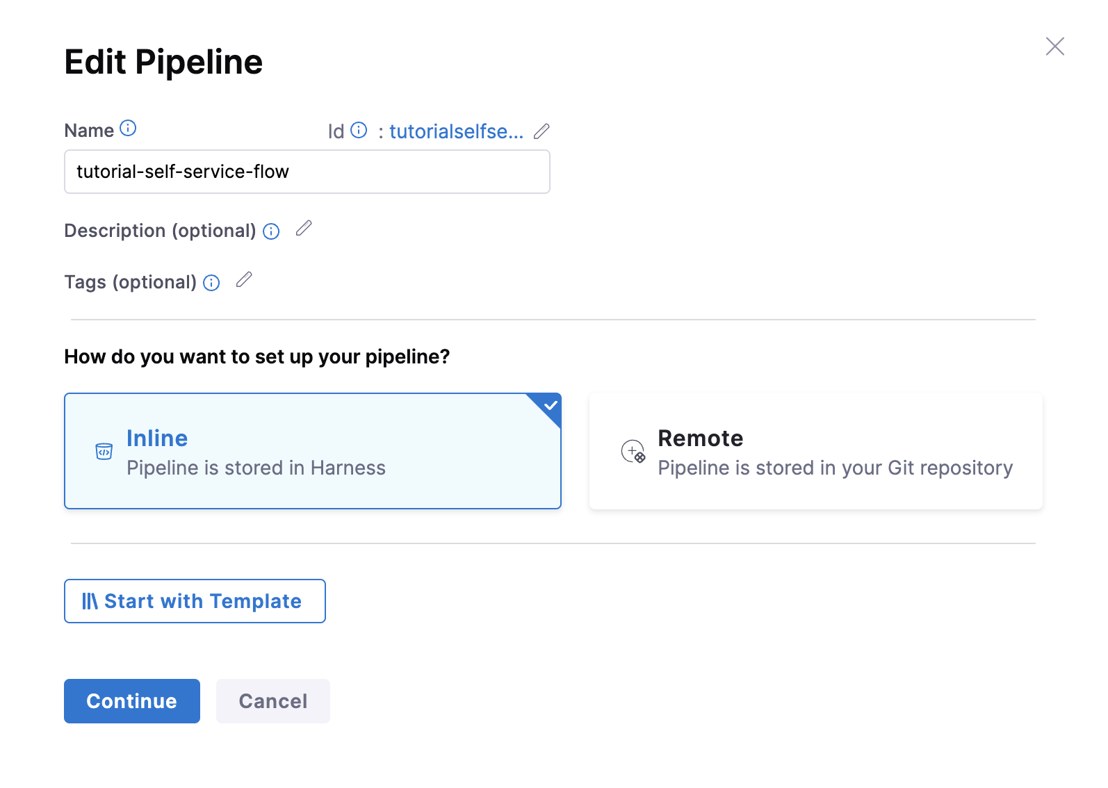 - Then select Create a Pipeline, add a name for the pipeline and select the type as Inline