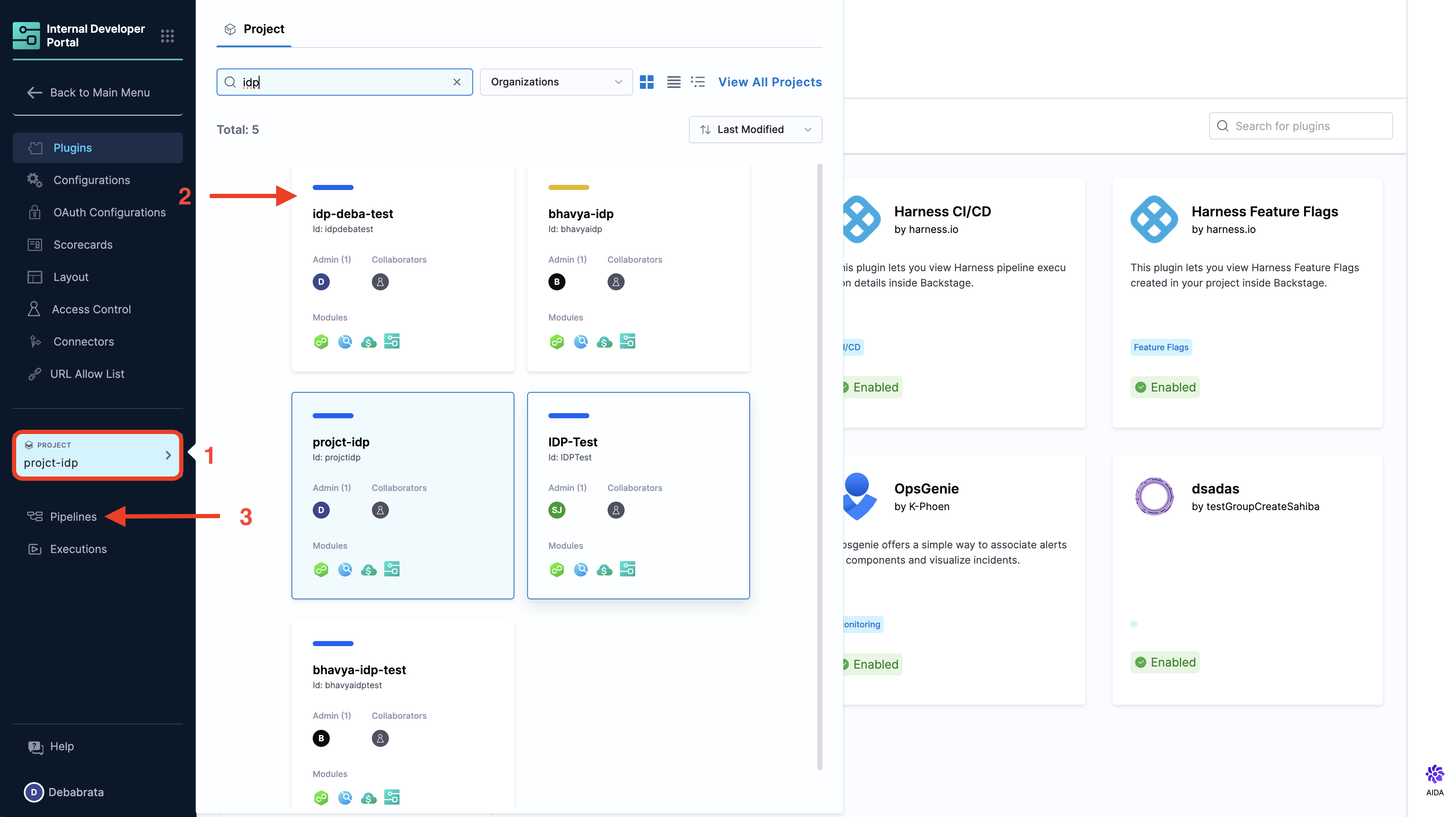 - Go to Admin section under IDP, select Projects, and then select a project.