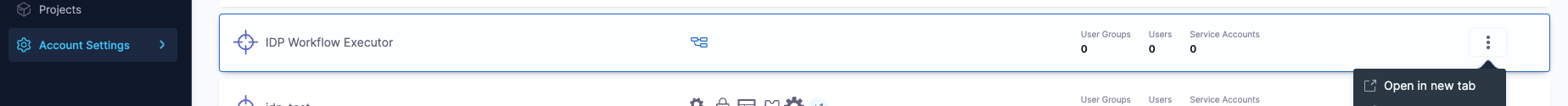 - Go to your administrative settings and select the scope (Account, Org, or Project) where you want to configure RBAC for Workflows.