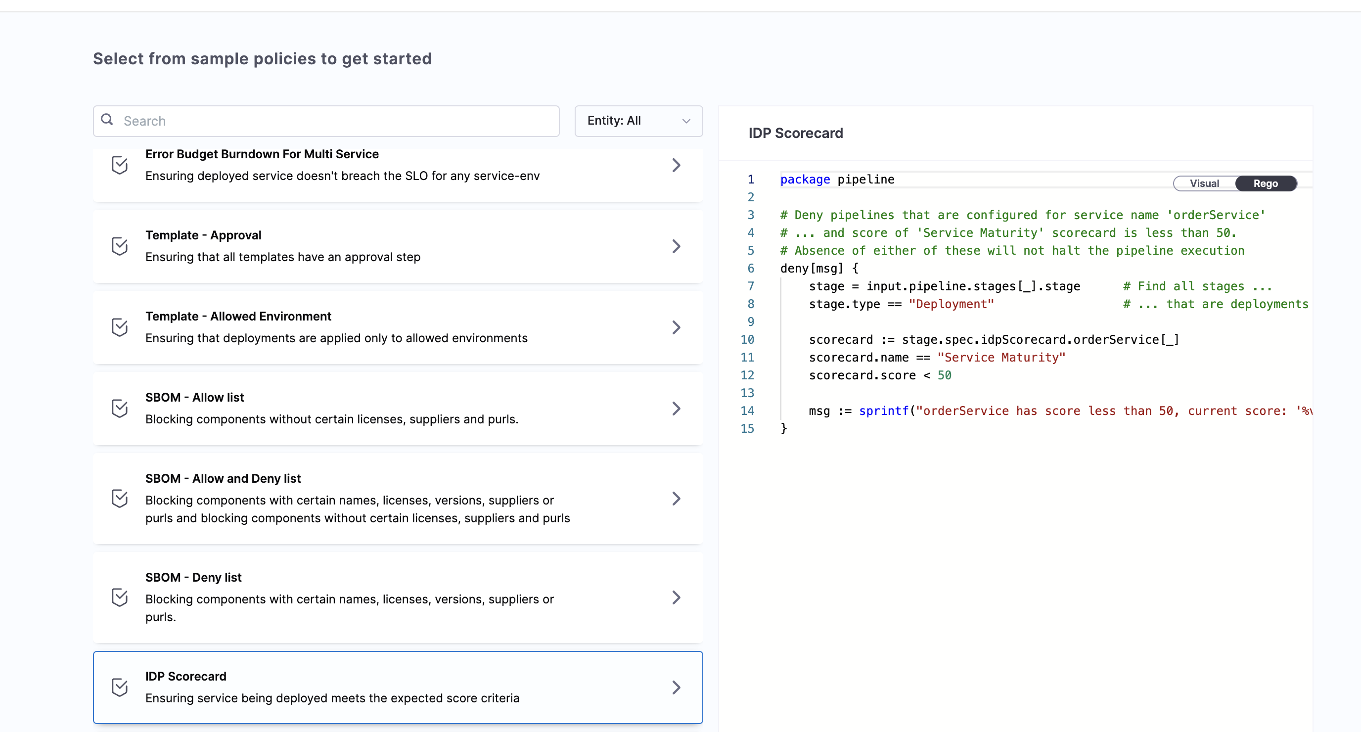 Examples with Harness OPA using Scorecards