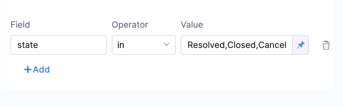 Statefield to be inResolved,Closed, orCancelledcan be specified as: