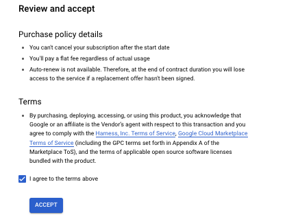 Purchase Harness products via the Google Cloud Marketplace public offer flow
