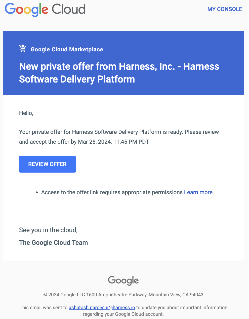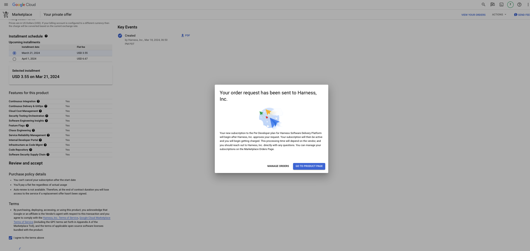 Purchase Harness products via the Google Cloud Marketplace private offer flow