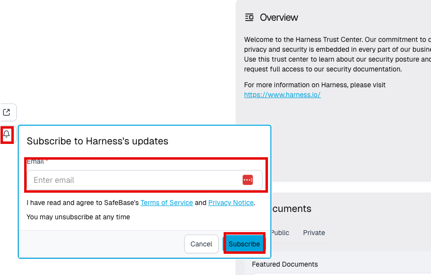 2. Subscribe to updates for the Harness Security Trust Center by adding your email and clicking Subscribe