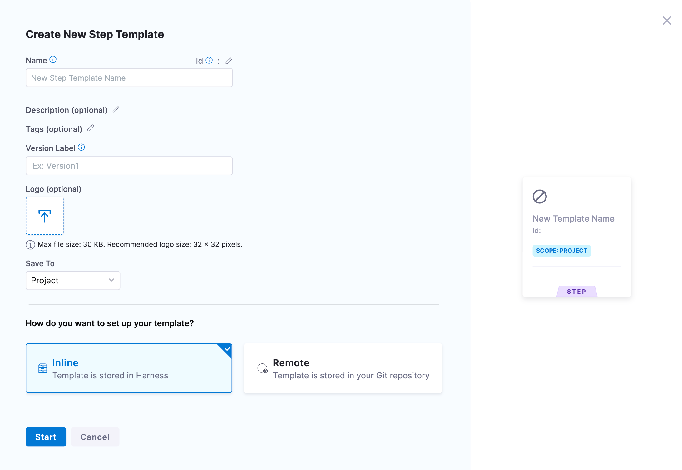 | Account | To share step/stage/pipeline templates with users in the account, as well as users within the organizations, and projects created within this account. |