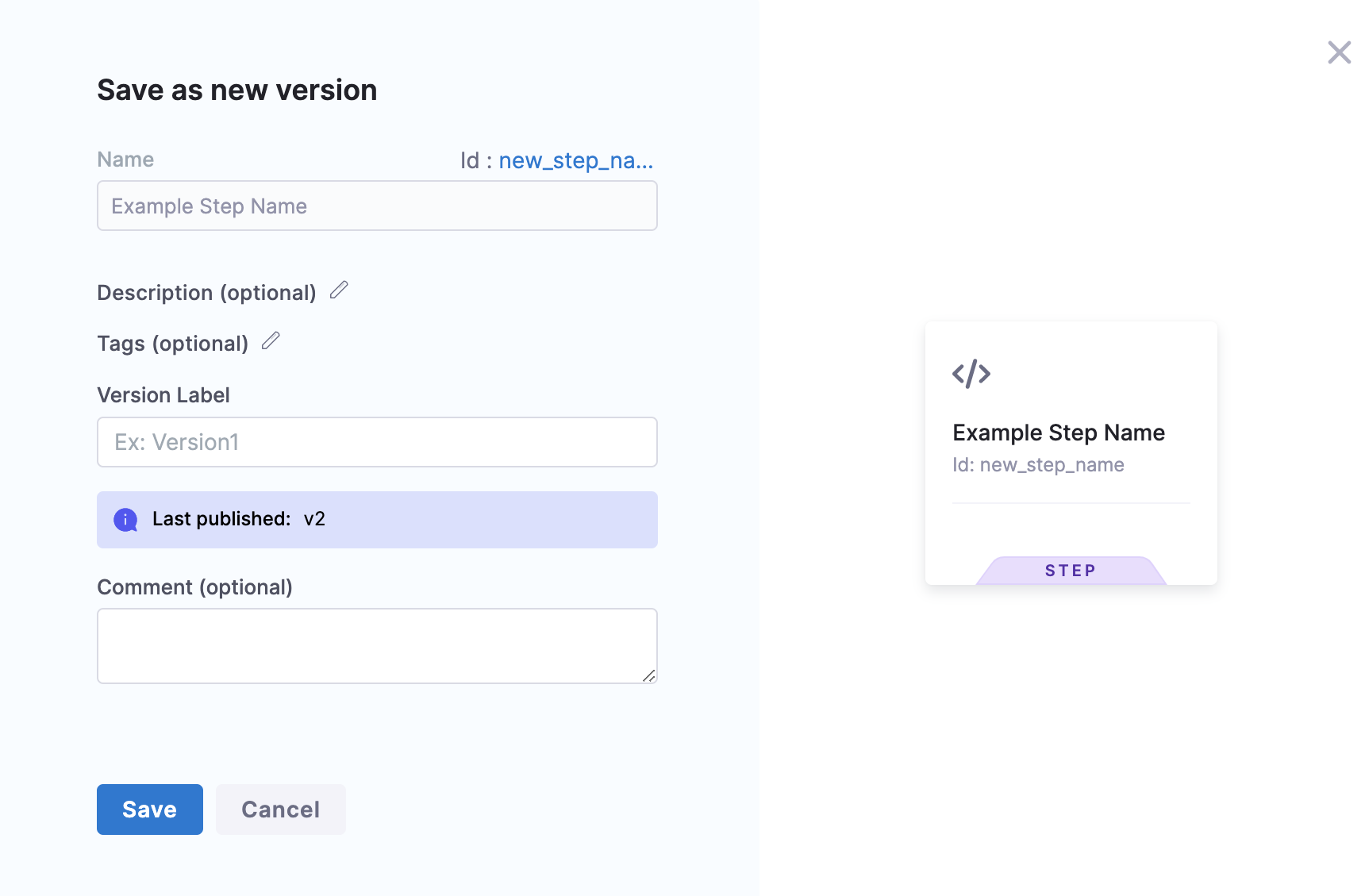 - Save as new version: Create a new version of the selected template and save with the changes you just made.