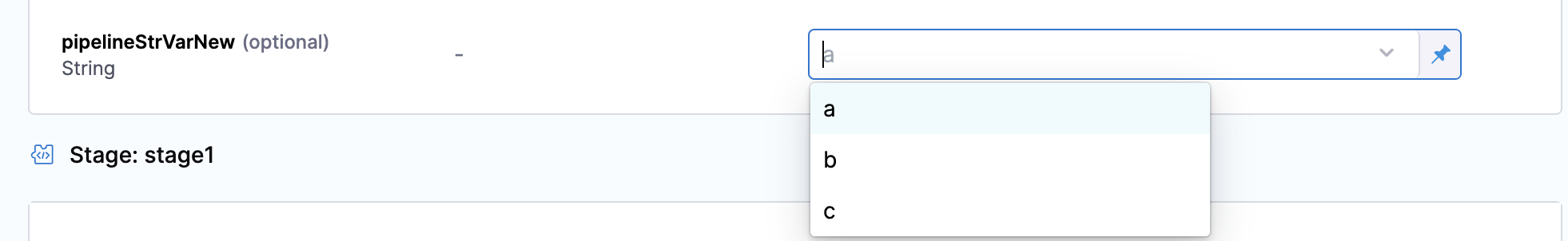 When the execution of the second stage (cust_2) starts, it will wait for the execution inputs. As shown, in var2, we have added allowed values as expressions, and those values have been converted into a list.
